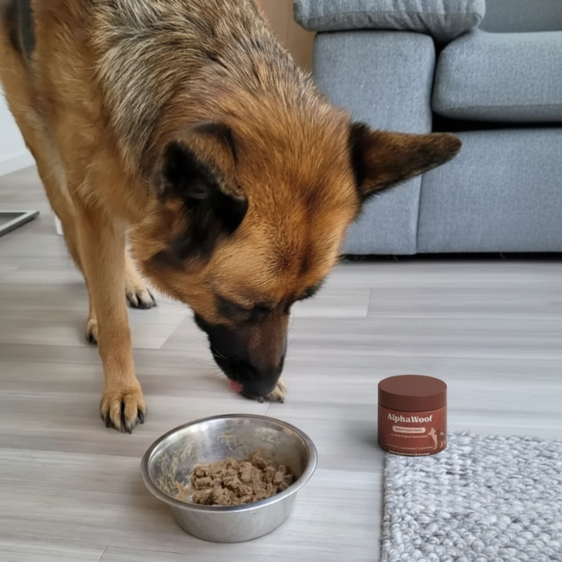 AlphaWoof helps stop red spots, constant licking, and keeps your best friend active and strong for years longer.